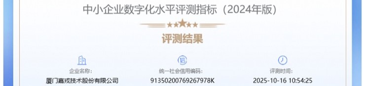 喜訊!嘉戎技術獲評《中小企業(yè)數(shù)字化評測指標》三級認證